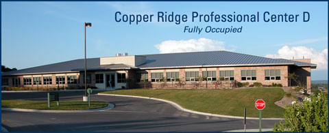 Copper Ridge offers virtually unlimited unit sizes and can provide office suites both large and small. You may choose to take advantage of today's low interest rates by purchasing an unfinished suite, or you can lease a suite which can be custom designed to your specifications. At Copper Ridge the choice is yours.