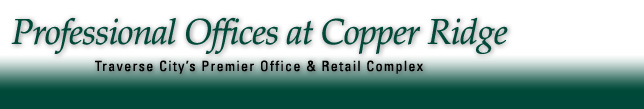 If you are interested in purchasing or leasing office space in the Traverse City area, you owe it to yourself to explore Copper Ridge. Professional Center A (Photo Gallery) currently has some availablity click here for a detailed listing. Professional Centers D & E are both fully occupied. You are welcome to take a tour of this scenic and unique community. Take a Virtual Tour now.